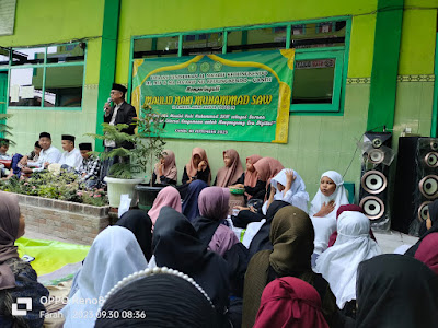 Dalam rangkaian peringatan maulid ini di isi dengan tausiyah oleh BPk.H.Abd.Halim,S.PdI,di dalam tausiyahnya beliau berpesan agar semua siswa bersyukur kepada Allah dan senantiasa gemar bersholawat kepada Baginda Nabi Muhammad SAW.