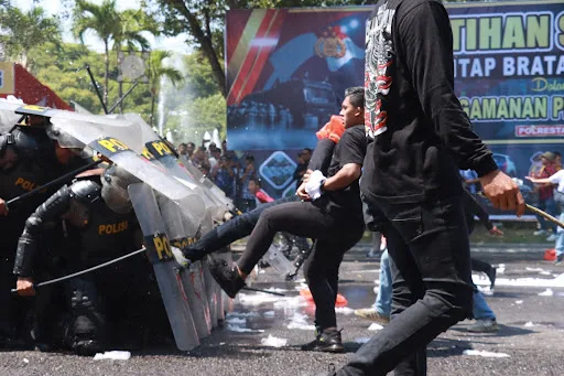 BhirawaNews || Banyuwangi : Jelang pelaksanaan Pemilu di tahun 2024 yang makin dekat, Kapolresta Banyuwangi Kombes Pol Deddy Foury Millewa imbau masyarakat dan seluruh pihak untuk senantiasa menjaga keamanan dan ketertiban. Hal tersebut disampaikannya saat Pelatihan Sispamkota (Sistem Pengamanan dalam Kota) Dalam Rangka Operasi Mantap Brata Tahun 2023 -2024 yang berlangsung di depan Pendopo Sabha Swagata Blambangan, Selasa (17/10/2023).